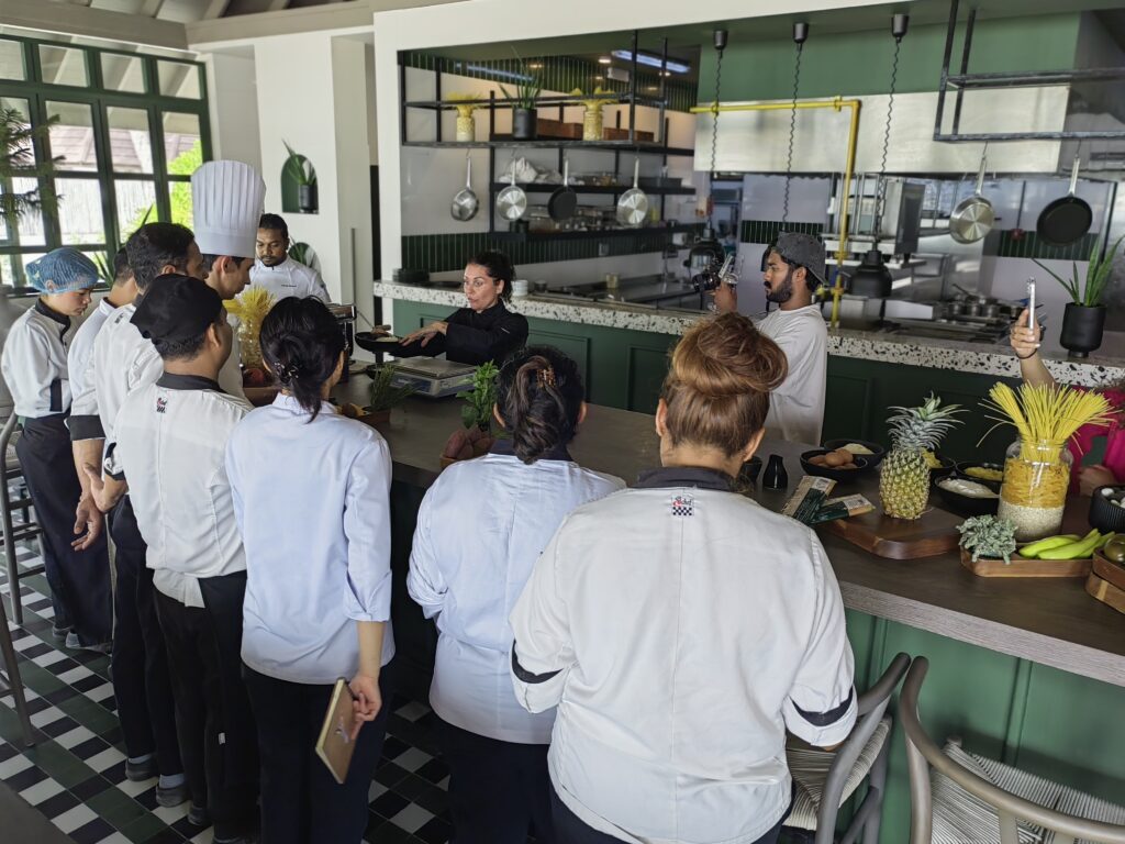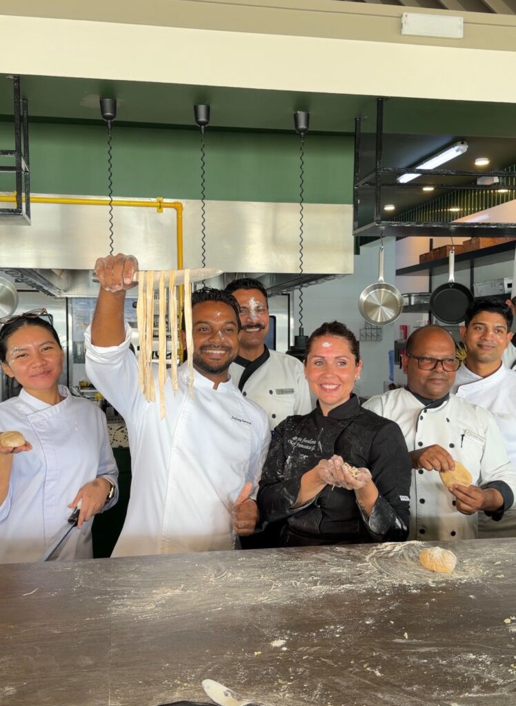 During her residency, Milano’s kitchen evolved into a vibrant atelier of flavour and finesse. Working closely with the resort’s culinary team, Chef Francesca led immersive training sessions, interactive cooking demonstrations, and real-time service mentorship. Her focus was precise yet poetic: honour regional traditions, respect seasonal ingredients, and allow each component to speak with clarity. From patiently hand-rolled pasta to sauces rooted in Italy’s diverse culinary heritage, every detail was approached with intention.